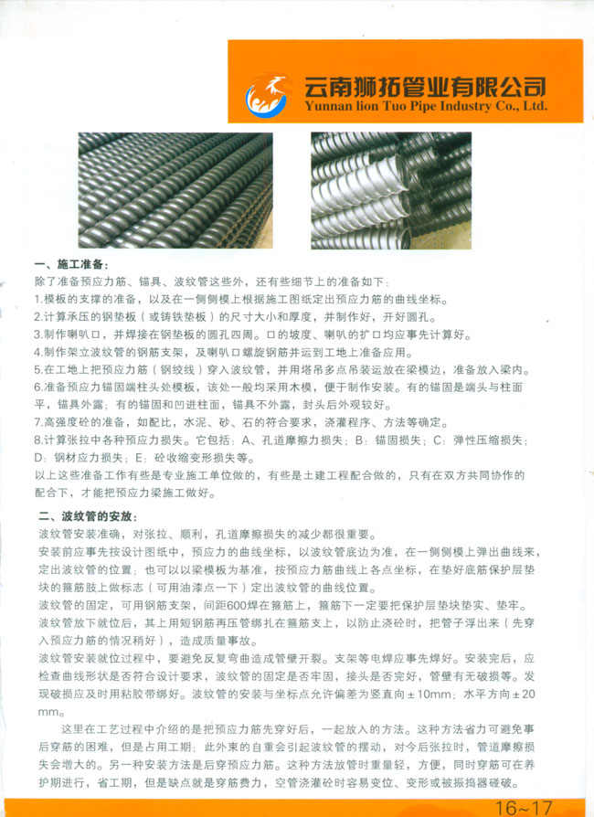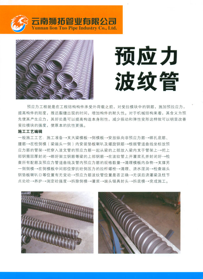 關(guān)鍵詞:獅拓產(chǎn)品:金屬應(yīng)預(yù)力波紋管07,云南獅拓管業(yè)有限公司,云南PE管道,昆明PE管道,云南雙壁波紋管,昆明雙壁波紋管,云南鋼絲網(wǎng)骨架管,昆明鋼絲網(wǎng)骨架管,云南PE碳素波紋管,昆明PE碳素波紋管,云南PE中空壁纏繞管,昆明PE中空壁纏繞管,云南PE給水管,昆明PE給水管,云南PE排水管,昆明PE排水管,云南PE穿線管,昆明PE穿線管,云南PE塑料檢查井,昆明PE塑料檢查井